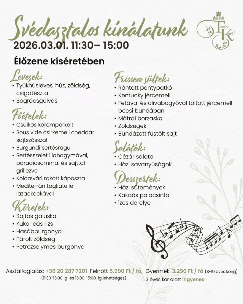 Vasárnap a pihenésé és a finom ételeké – az utóbbiról pedig mi gondoskodunk! Gyertek, és élvezzétek a vasárnapi ebédet idilli környezetben, ahol minden adott egy tökéletes hétzáráshoz.