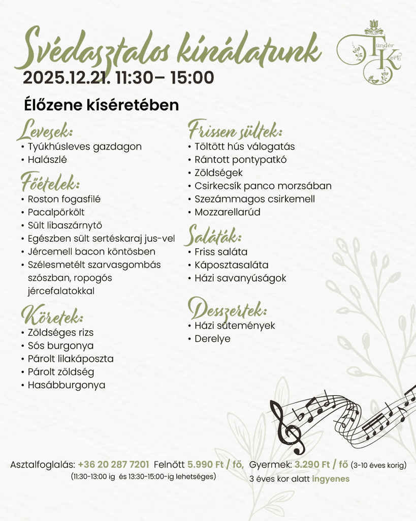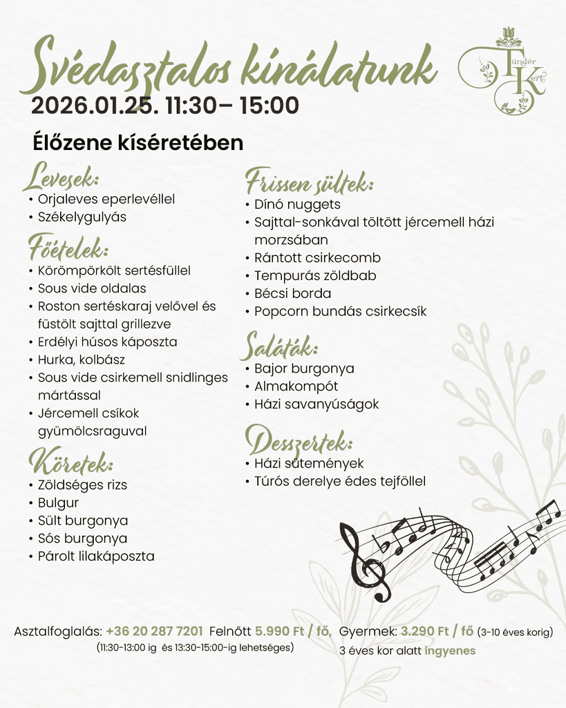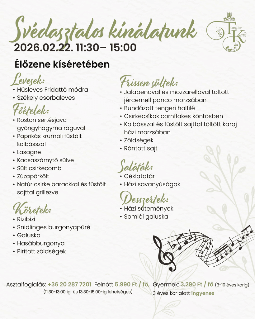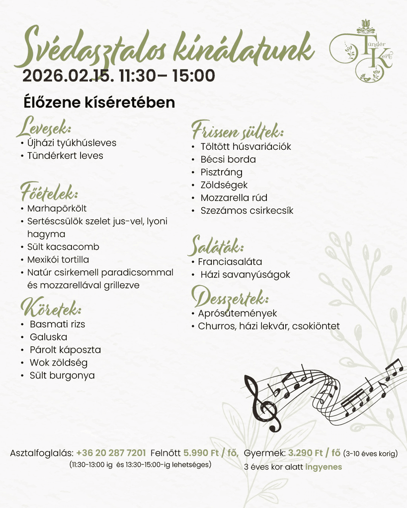 Vasárnap a pihenésé és a finom ételeké – az utóbbiról pedig mi gondoskodunk! Gyertek, és élvezzétek a vasárnapi ebédet idilli környezetben, ahol minden adott egy tökéletes hétzáráshoz.