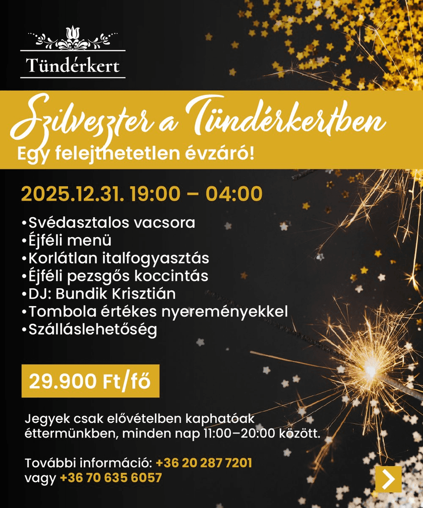 Tündérkert – varázslatos esküvői helyszín Debrecen mellett, ahol az exkluzív étterem és elegáns szállás tökéletes harmóniát teremt. Egyedi dekorációval, kifinomult menüvel és professzionális szervezéssel gondoskodunk arról, hogy az esküvőd vagy bármilyen különleges eseményed felejthetetlen élmény legyen.