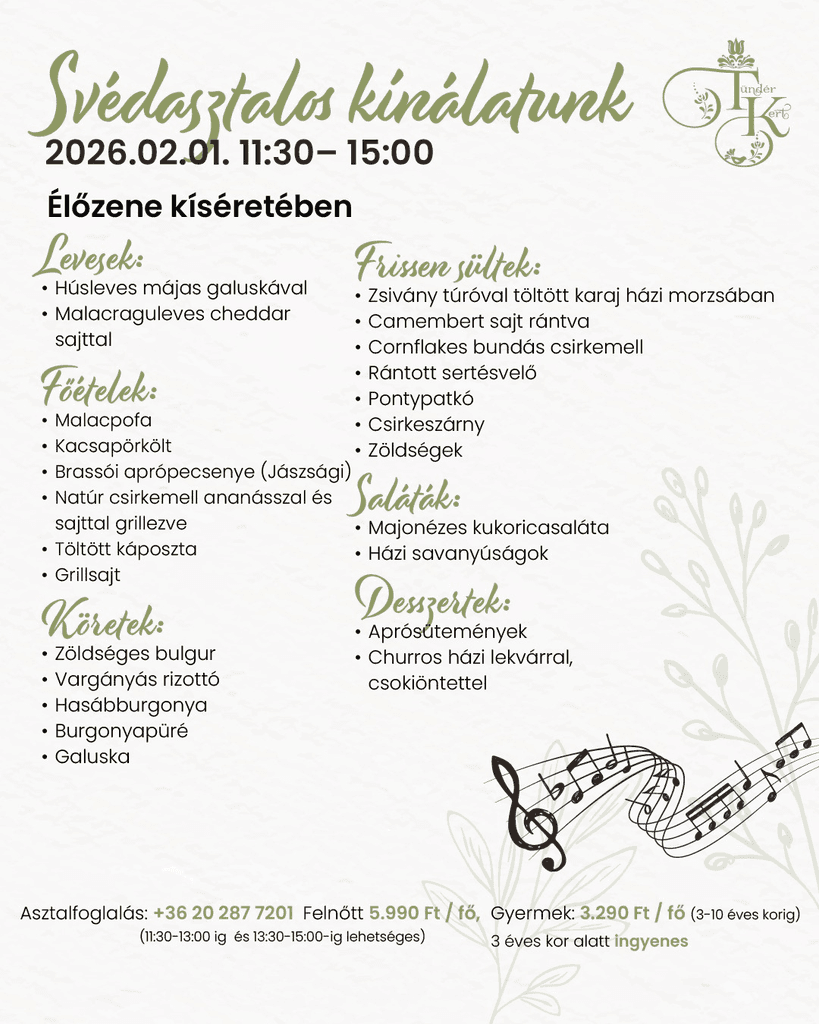 Vasárnap a pihenésé és a finom ételeké – az utóbbiról pedig mi gondoskodunk! Gyertek, és élvezzétek a vasárnapi ebédet idilli környezetben, ahol minden adott egy tökéletes hétzáráshoz.