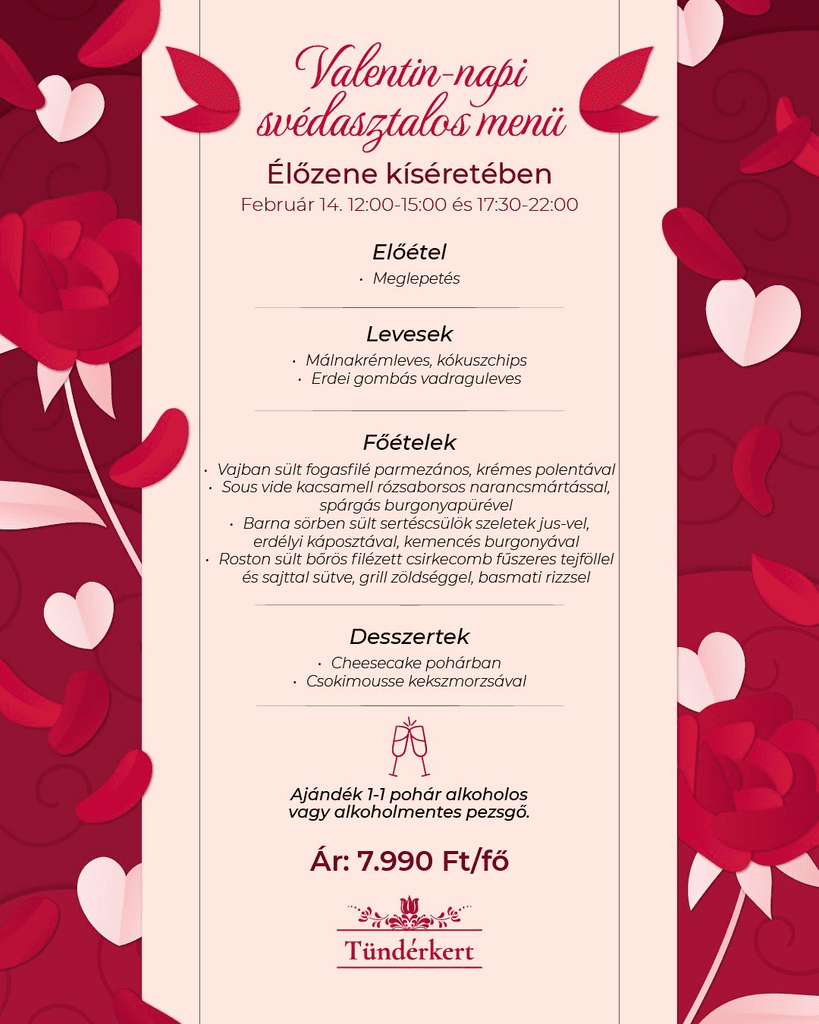 Tündérkert – varázslatos esküvői helyszín Debrecen mellett, ahol az exkluzív étterem és elegáns szállás tökéletes harmóniát teremt. Egyedi dekorációval, kifinomult menüvel és professzionális szervezéssel gondoskodunk arról, hogy az esküvőd vagy bármilyen különleges eseményed felejthetetlen élmény legyen.